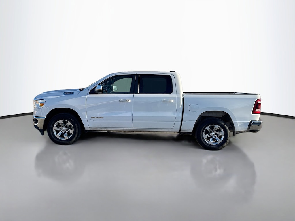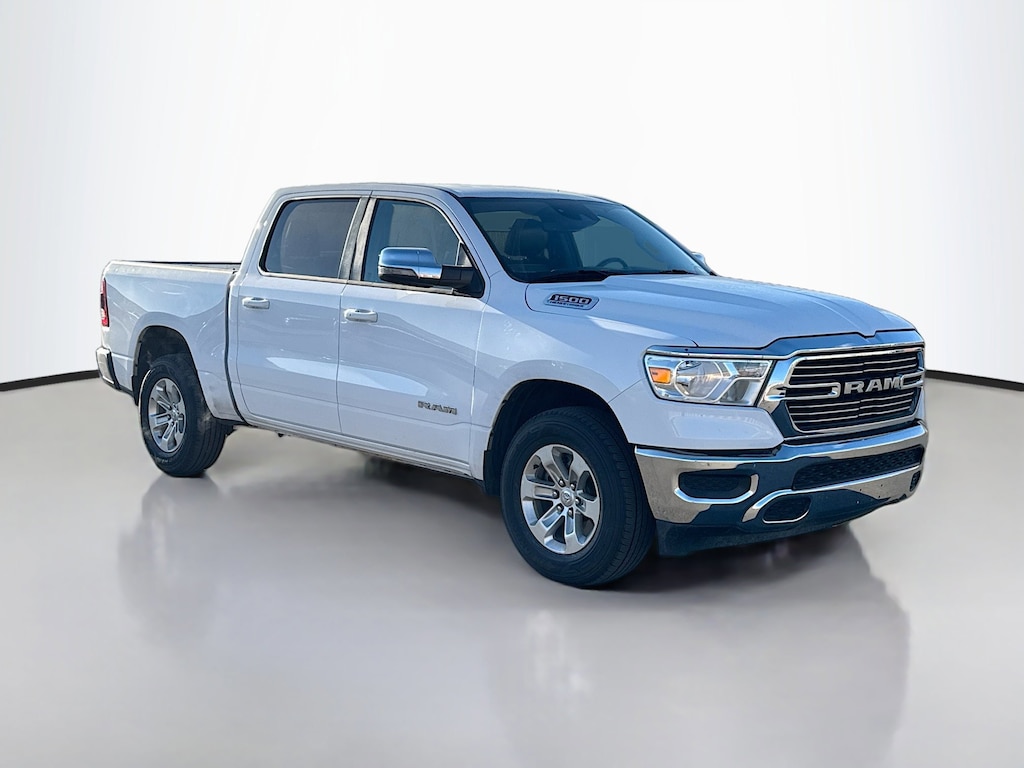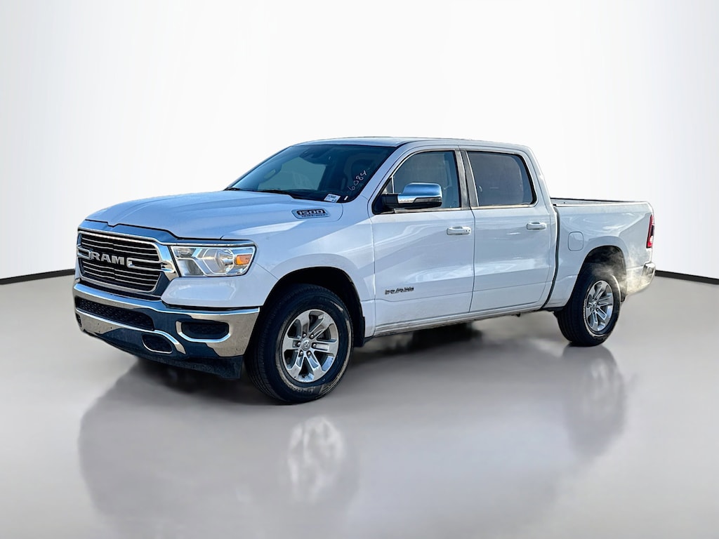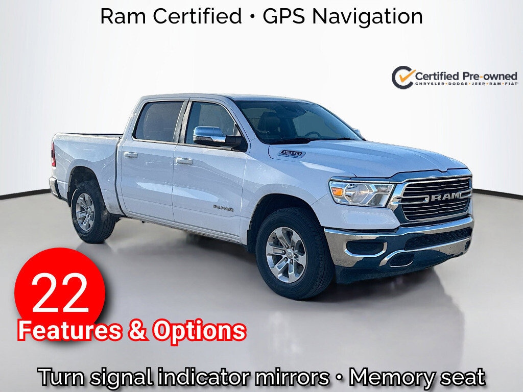 125-Point Chrysler Jeep Dodge Ram Certified Inspection, Multi-Point Inspection, w/ Oil Change, Smog Completed, & Full Vehicle Detail Insided & Out, Wiper Blades are New all around, Cabin Air Filter is New, Engine Air Filter is New, Certified Pre-Owned Gold Certified, 10 Speakers, 3 Rear Seat Head Restraints, 3.21 Rear Axle Ratio, 4 Way Front Headrests, 4-Wheel Disc Brakes, 48V Belt Starter Generator, 4G LTE Wi-Fi Hot Spot, ABS brakes, Air Conditioning, Alloy wheels, AM/FM radio: SiriusXM with 360L, Apple CarPlay, Apple CarPlay/Android Auto, Audio memory, Auto-dimming door mirrors, Auto-Dimming Exterior Driver Mirror, Auto-dimming Rear-View mirror, Automatic temperature control, Brake assist, Bumpers: chrome, Chrome Exterior Mirrors, Compass, Connected Travel & Traffic Services, Connectivity - US/Canada, Convex Wide-Angle Exterior Mirror Insert, Delay-off headlights, Driver door bin, Driver Seat Memory, Driver vanity mirror, Dual front impact airbags, Dual front side impact airbags, Electronic Stability Control, Exterior Mirrors Courtesy Lamps, Exterior Mirrors w/Heating Element, Exterior Mirrors w/Memory, Exterior Mirrors w/Supplemental Signals, For Details, Visit DriveUconnect.com, For More Info, Call 800-643-2112, Front anti-roll bar, Front Center Armrest w/Storage, Front dual zone A/C, Front fog lights, Front License Plate Bracket, Front reading lights, Front Seat Back Map Pockets, Front wheel independent suspension, Fully automatic headlights, Garage door transmitter, Global Telematics Box Module (TBM), Google Android Auto, GPS Navigation, HD Radio, Heated door mirrors, Heated Front Seats, Heated front seats, Heated Steering Wheel, Heated steering wheel, Illuminated entry, Integrated Voice Command w/Bluetooth, Leather steering wheel, Leather Trim 40/20/40 Bench Seat, Low tire pressure warning, Manufacturer's Statement of Origin, Memory seat, Navigation System, Occupant sensing airbag, Outside temperature display, Overhead airbag, Overhead console, Panic alarm, ParkView Rear Back-Up Camera, Passenger door bin, Passenger vanity mirror, Power 2-Way Driver Lumbar Adjust, Power 2-Way Passenger Lumbar Adjust, Power 8-Way Driver & Passenger Seats, Power door mirrors, Power driver seat, Power passenger seat, Power steering, Power windows, Power-Folding Mirrors, Quick Order Package 27H Laramie, Radio data system, Radio: Uconnect 5 Nav w/8.4" Display, RAM Grille Badge - Chrome, Rear 60/40 Folding Seat, Rear anti-roll bar, Rear seat center armrest, Rear step bumper, Remote keyless entry, Security system, SiriusXM Radio Service, SiriusXM w/360L, Speed control, Split folding rear seat, Steering wheel mounted audio controls, Tachometer, Telescoping steering wheel, Tilt steering wheel, Traction control, Trip computer, Turn signal indicator mirrors, USB Host Flip, Variably intermittent wipers, Ventilated Front Seats, Ventilated front seats, Voltmeter, Wheels: 18" x 8" Aluminum Base Painted.