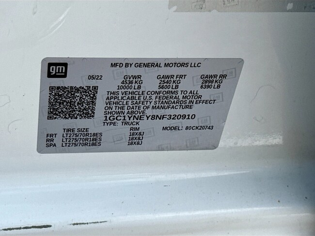 - VIN : 1GC1YNEY8NF320910