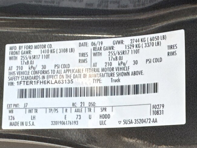 • VIN : 1FTER1FH6KLA63135