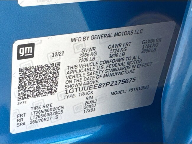 • VIN : 1GTUUEE87PZ175675