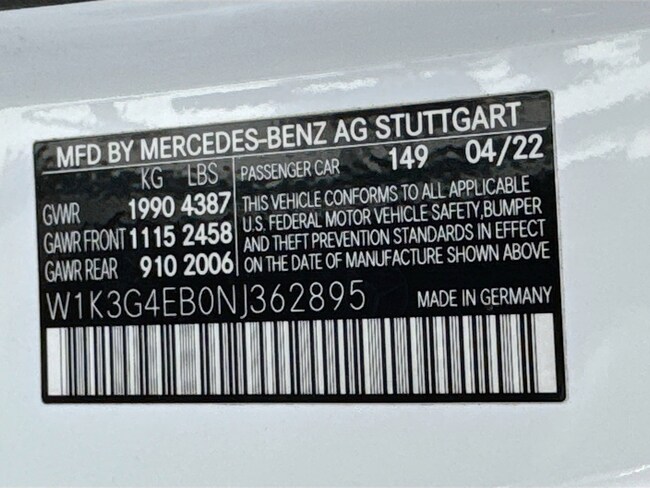 - VIN : W1K3G4EB0NJ362895