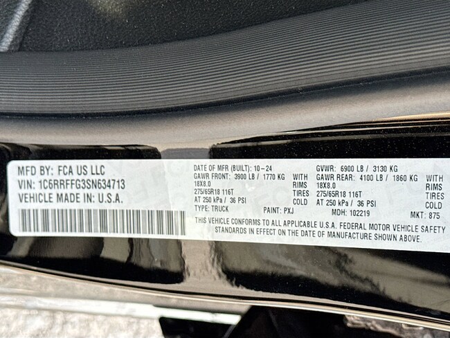 - VIN : 1C6RRFFG3SN634713