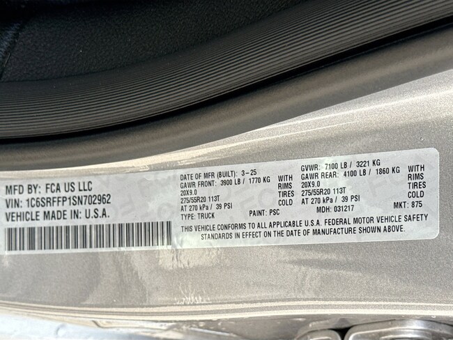 - VIN : 1C6SRFFP1SN702962