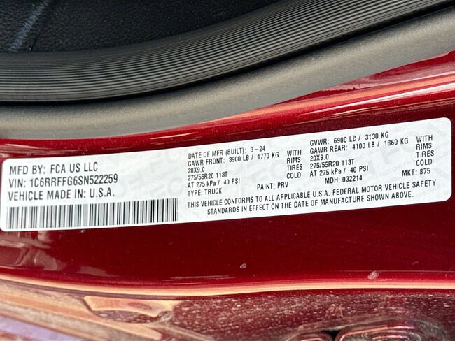 - VIN : 1C6RRFFG6SN522259