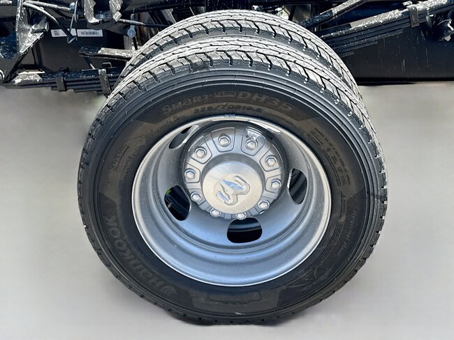 Wheels 19.5 x 6-inch front and dual rear silver steel wheels |