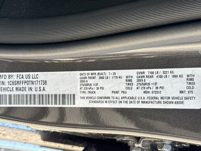 - VIN : 1C6SRFFP0TN171738