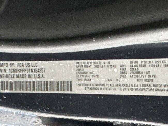 - VIN : 1C6SRFFP9TN154257