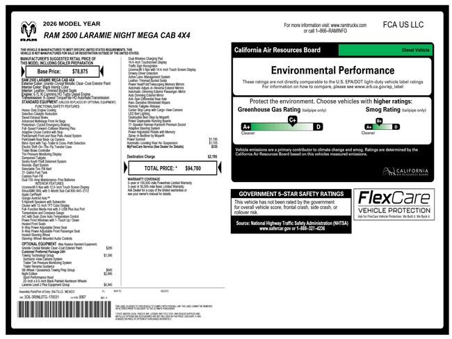 - Engine torque: 1,075 lb.-ft. @ 1,800RPM