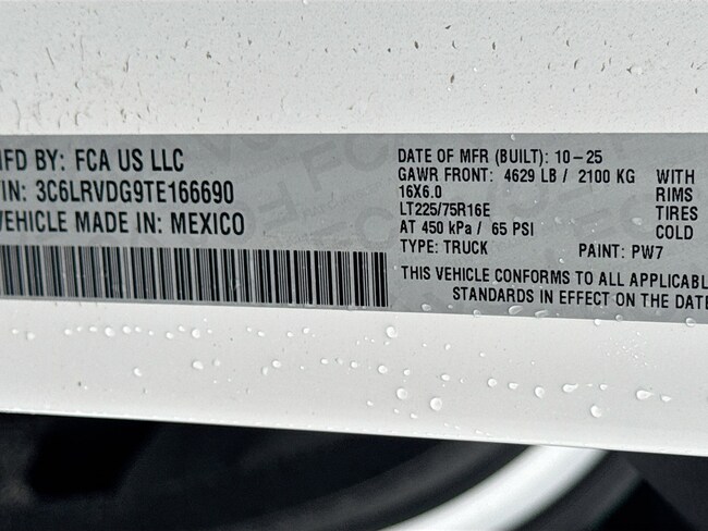- VIN : 3C6LRVDG9TE166690