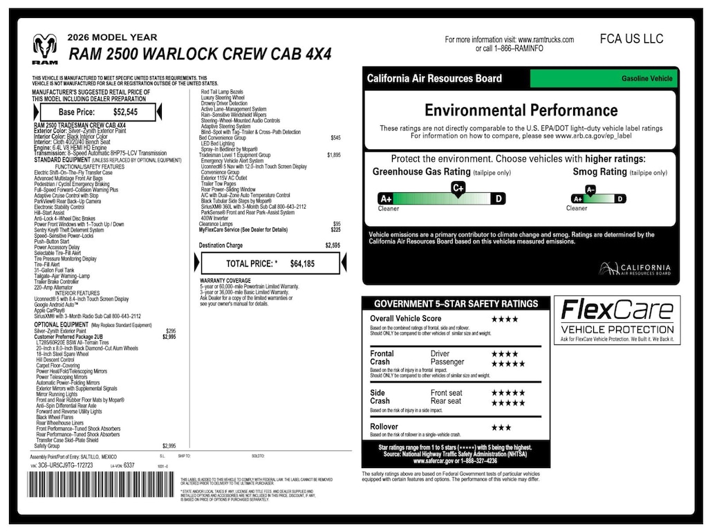 A great vehicle and a great value! Top features include rain sensing wipers, a front bench seat, a bedliner, and voice activated navigation.