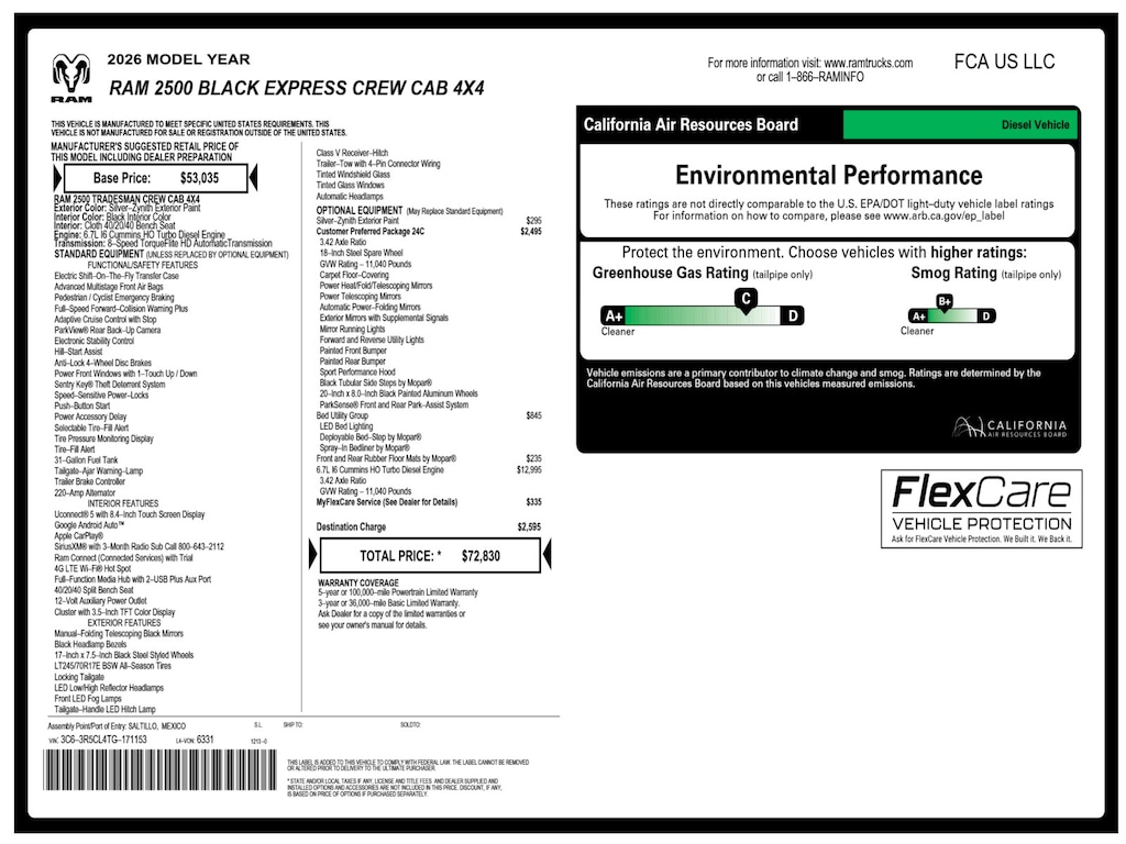 • Diesel engine warranty: 60 months/100,000miles