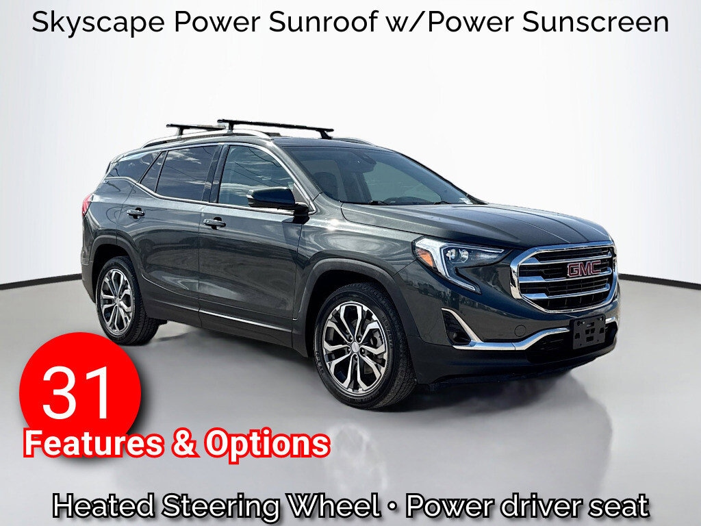 Multi-Point Inspection, w/ Oil Change, Smog Completed, & Full Vehicle Detail Insided & Out, Wiper Blades are New all Around, Cabin Air Filter is New, Engine Air Filter is New, 2 USB Data Ports, 2 USB Data Ports w/Auxiliary Input Jack, 4-Way Manual Front Passenger Seat, 4-Wheel Antilock 4-Wheel Disc Brakes, 4-Wheel Disc Brakes, 6 Speakers, 6-Speaker Audio System Feature, 6-Way Power Front Passenger Seat, 8-Way Power Driver Seat Adjuster, ABS brakes, Air Conditioning, Alloy wheels, AM/FM radio: SiriusXM, Apple CarPlay/Android Auto, Auto-dimming door mirrors, Auto-dimming Rear-View mirror, Automatic temperature control, Bluetooth® For Phone, Brake assist, Bumpers: body-color, Compass, Delay-off headlights, Driver & Front Passenger Heated Seats, Driver Alert Package I, Driver Alert Package II, Driver door bin, Driver vanity mirror, Dual Exhaust w/Bright Tips, Dual front impact airbags, Dual front side impact airbags, Electronic Stability Control, Emergency communication system: OnStar Guidance, Exterior Parking Camera Rear, Following Distance Indicator, Forward Collision Alert, Four wheel independent suspension, Front anti-roll bar, Front Bucket Seats, Front Center Armrest, Front dual zone A/C, Front fog lights, Front Passenger 2-Way Power Lumbar, Front reading lights, Fully automatic headlights, Hands-Free Rear Power Programmable Liftgate, HD Radio, Heated door mirrors, Heated front seats, Heated Steering Wheel, High-Intensity Discharge Headlights, Illuminated entry, Infotainment Package II, IntelliBeam Auto High Beam Headlamp Control, Lane Change Alert w/Side Blind Zone Alert, Lane Keep Assist w/Lane Departure Warning, License Plate Front Mounting Package, Low Speed Forward Automatic Braking, Low tire pressure warning, Memory Package, Occupant sensing airbag, Outside temperature display, Overhead airbag, Overhead console, Panic alarm, Passenger door bin, Passenger vanity mirror, Perforated Leather-Appointed Seat Trim, Power door mirrors, Power Driver Lumbar Control, Power driver seat, Power steering, Power windows, Preferred Equipment Group 4SA, Preferred Package, Premium 7-Speaker Bose Sound System w/Amplifier, Radio data system, Radio: GMC Infotainment Audio System w/8" Display, Radio: GMC Infotainment Audio System w/Navigation, Rear anti-roll bar, Rear Cross-Traffic Alert, Rear Park Assist & Safety Alert Seat, Rear seat center armrest, Rear window defroster, Rear window wiper, Remote keyless entry, Roof Rack Cross Rails (LPO), Roof rack: rails only, SD Card Reader, Security system, SiriusXM Satellite Radio, Skyscape Power Sunroof w/Power Sunscreen, Speed control, Speed-sensing steering, Split folding rear seat, Spoiler, Steering wheel mounted audio controls, Tachometer, Telescoping steering wheel, Tilt steering wheel, Traction control, Trip computer, Turn signal indicator mirrors, Universal Home Remote, Variably intermittent wipers, Wheels: 19" x 7.5" Machined Aluminum w/Gray Accents.